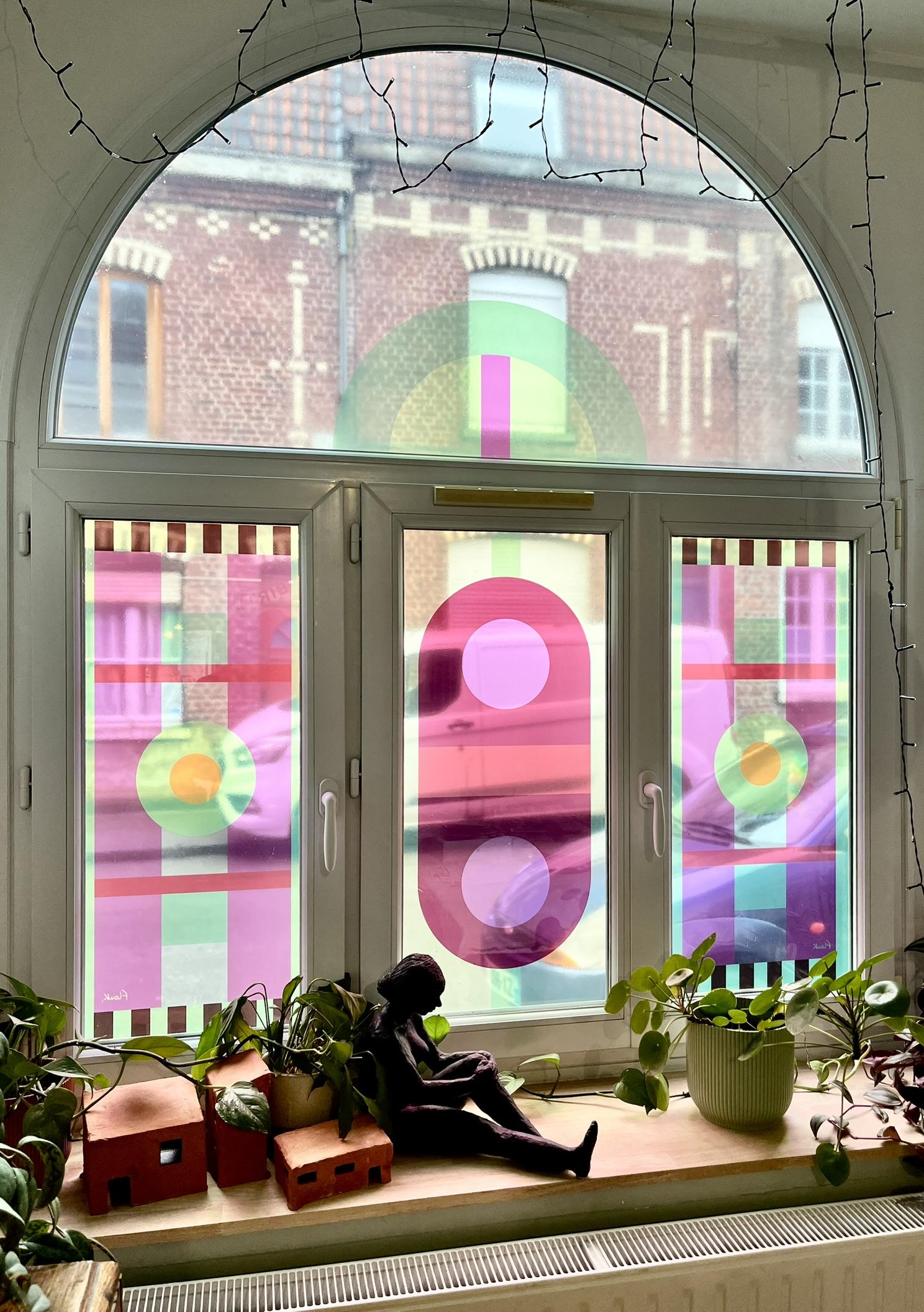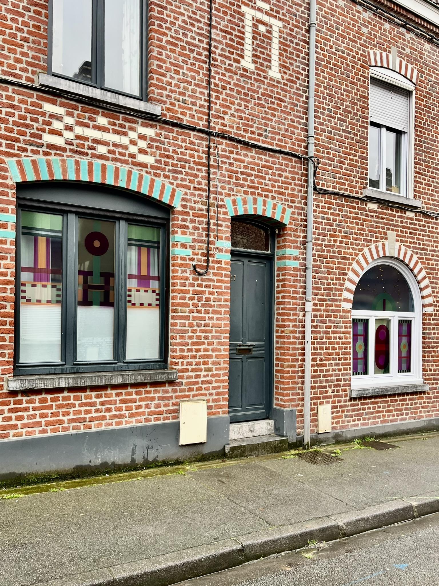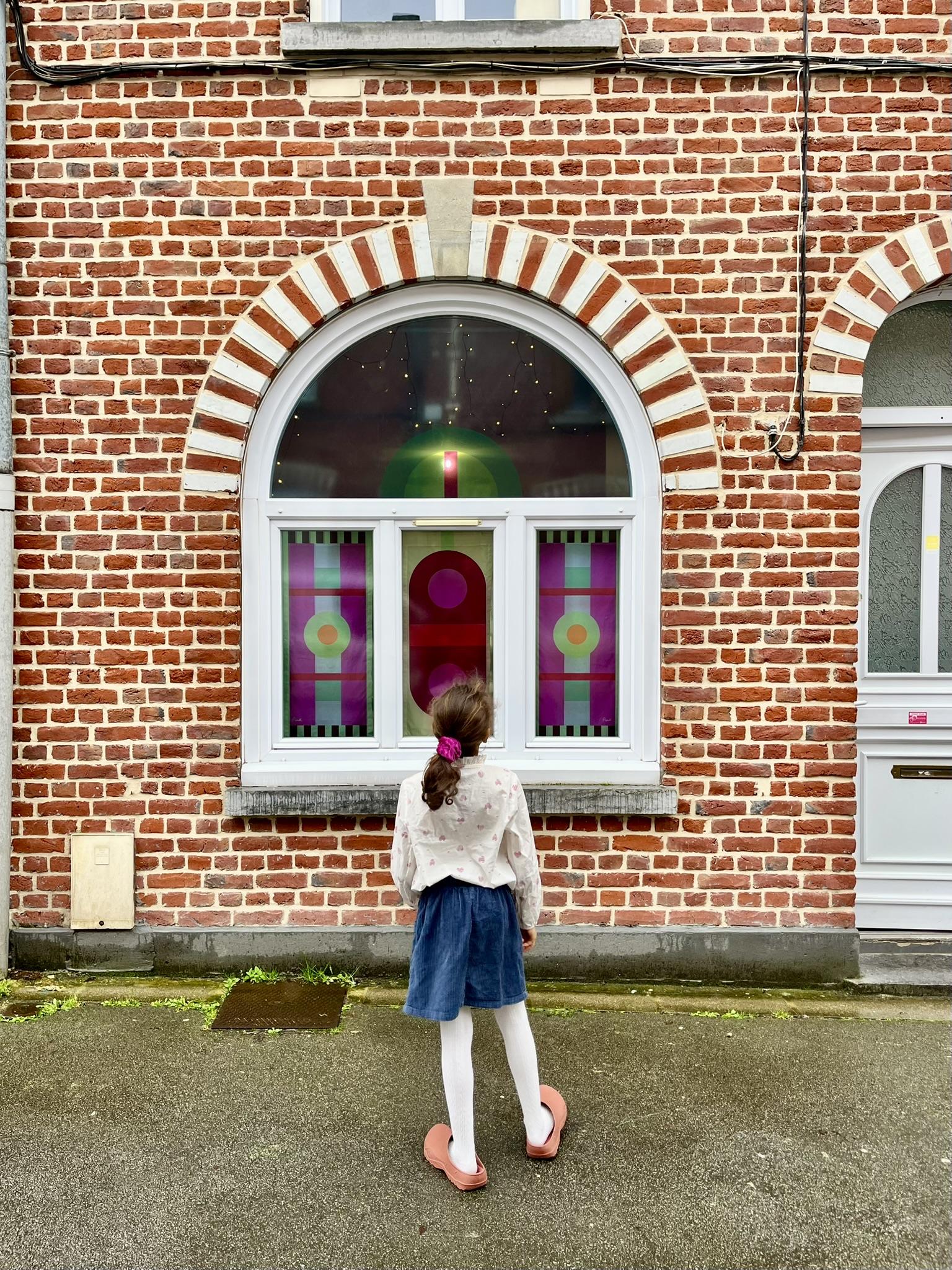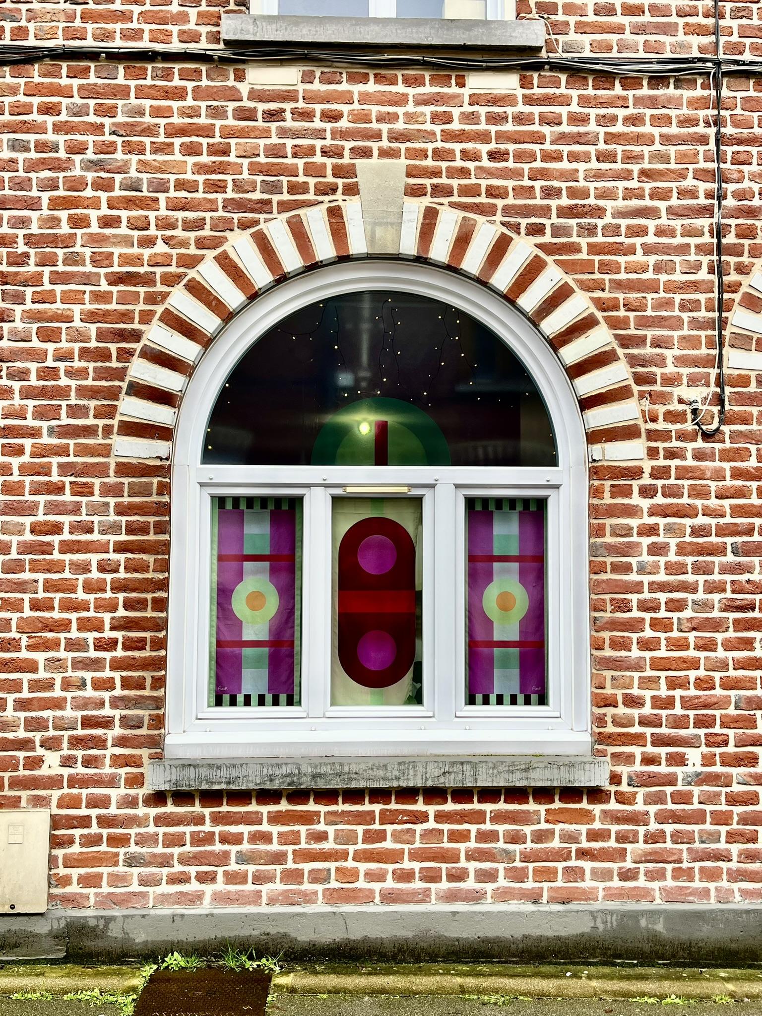 Briques, arcs, motifs répétés… les compositions étaient déjà là. En y ajoutant mon univers graphique, ces fenêtres sont devenues un terrain de jeu idéal pour sublimer l’architecture du quartier et son histoire textile.